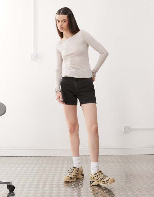 Weekday - Eya - Short en jean à taille haute - Noir travaillé - Exclusivité ASOS