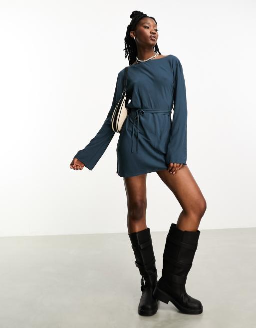 Weekday - Farah - Robe courte avec dos ouvert et liens à la taille - Bleu foncé