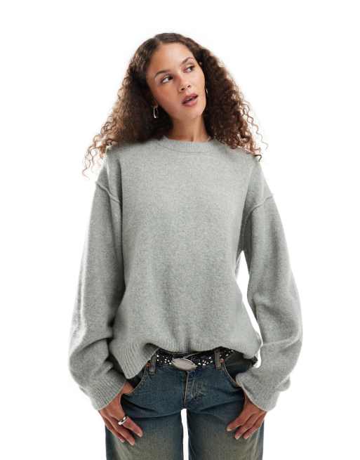Weekday - Funda - Pull en laine mélangée - Vert sauge chiné