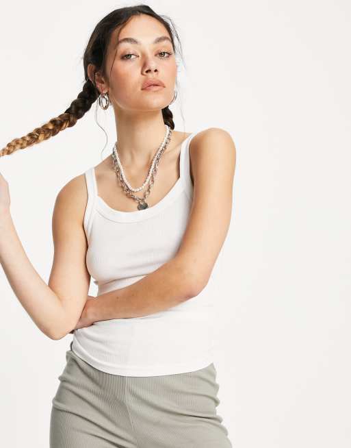 Weekday - Kristy - Débardeur en coton côtelé - Blanc - WHITE
