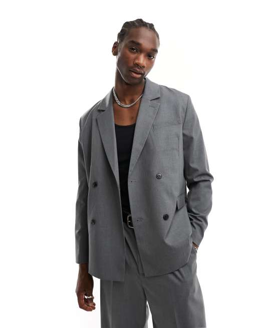 Weekday - Leo - Blazer croisé d'ensemble - Gris foncé chiné