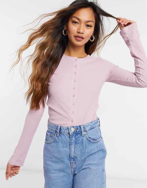 Weekday - Minerva - Gilet boutonné à manches longues - Lilas