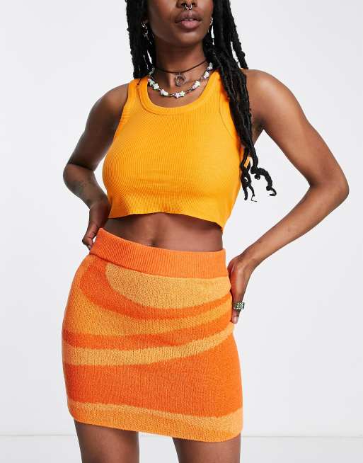 Weekday - Mini-jupe en maille imprimé tourbillon - Orange