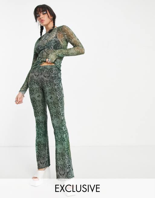 Weekday - Pantalon d'ensemble évasé en polyester à imprimé serpent - Vert - MGREEN