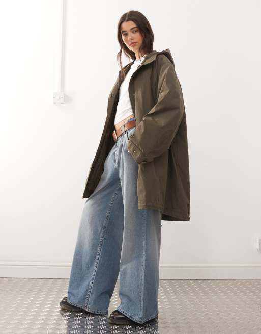 Weekday - Parka oversize avec doublure amovible et capuche en fausse fourrure - Taupe foncé