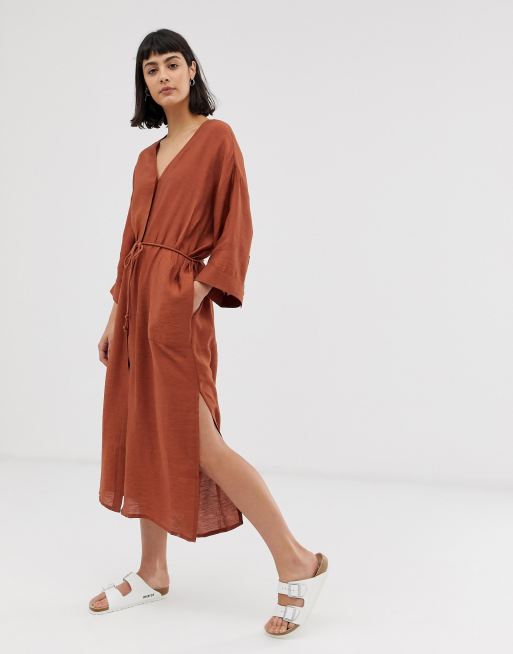 Weekday - Robe à smocks boutonnée devant - Rouille