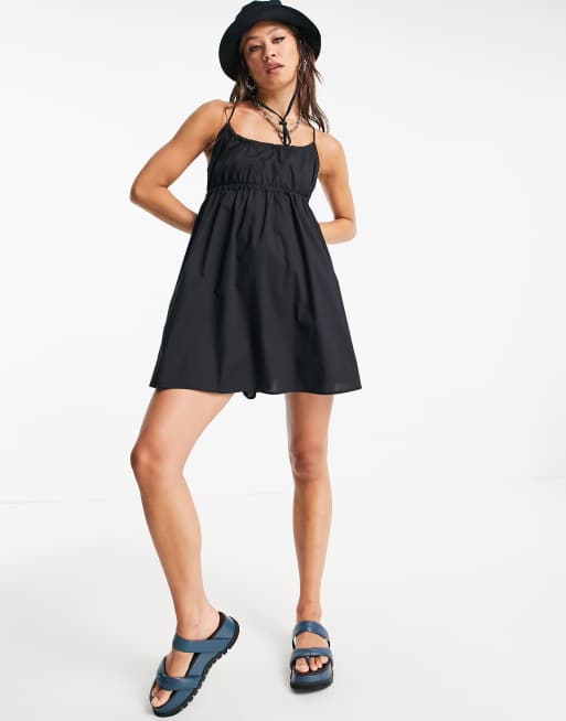 Weekday - Robe babydoll en coton à dos croisé - Noir - BLACK