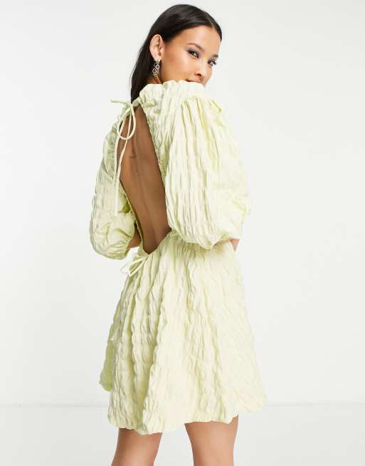 Weekday - Robe courte à manches bouffantes nouée dans le dos - Vert pâle