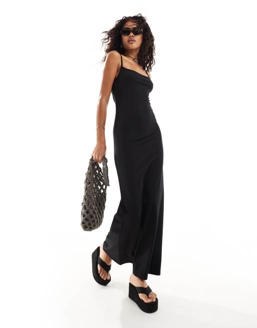 Weekday - Robe longue en jersey ultra doux avec encolure carrée et lanière dans le dos - Noir