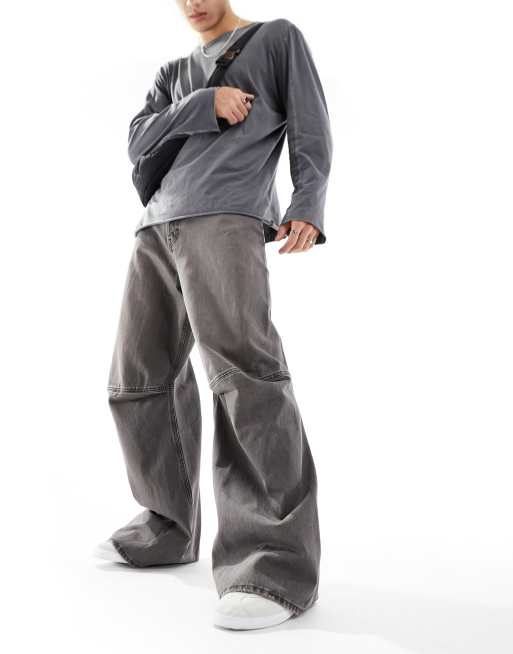 Weekday - Sculpture - Jean baggy coupe ample avec coutures visibles - Gris argile