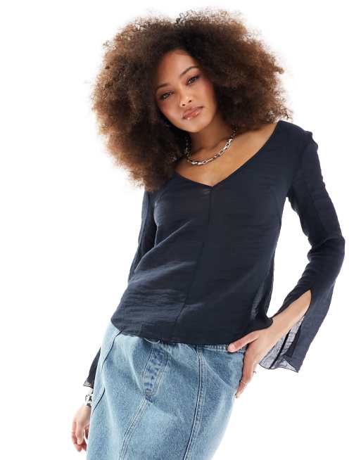 Weekday - Sophia - Blouse transparente à dos ouvert - Bleu marine