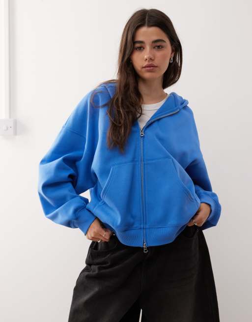 Weekday - Sweat à capuche oversize à fermeture éclair en jersey épais - Bleu