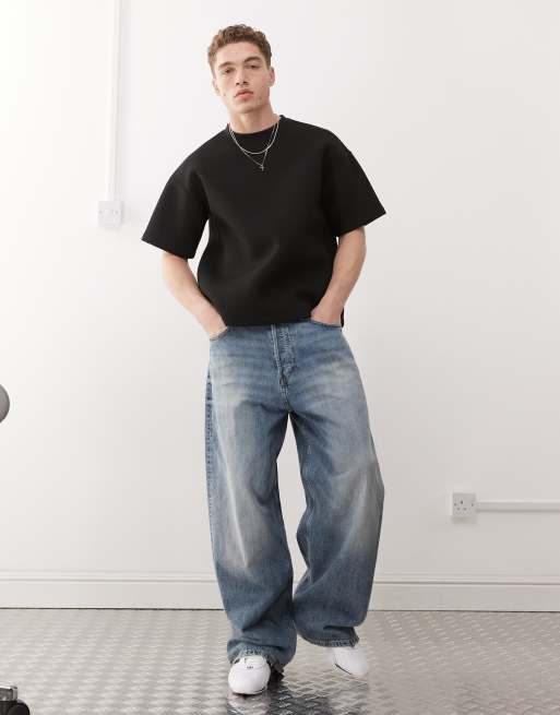 Weekday - T-shirt coupe carrée de qualité supérieure en tissu effet néoprène - Noir