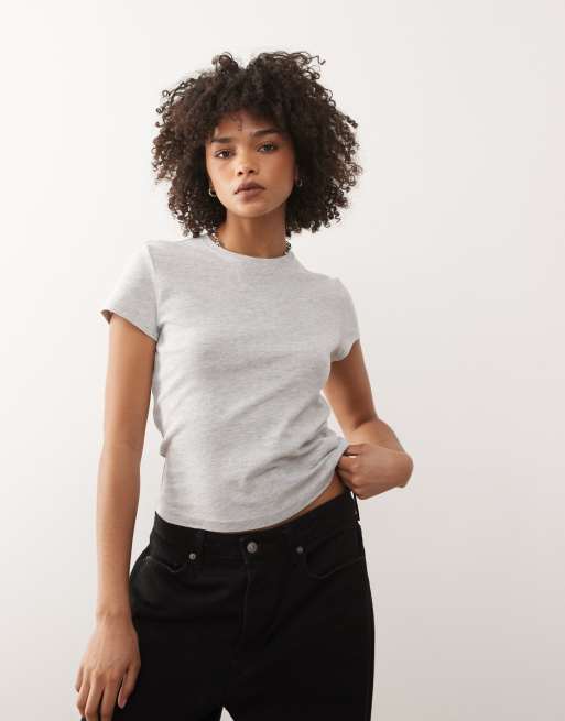 Weekday - T-shirt effet rétréci style années 90 - Gris chiné