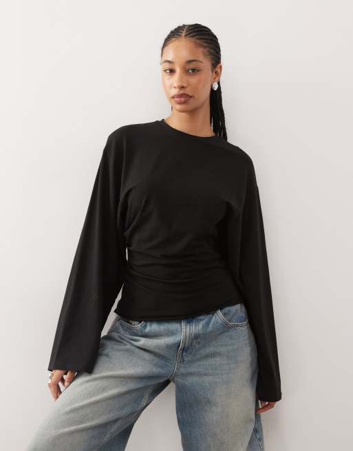 Weekday - T-shirt manches longues à taille cintrée - Noir