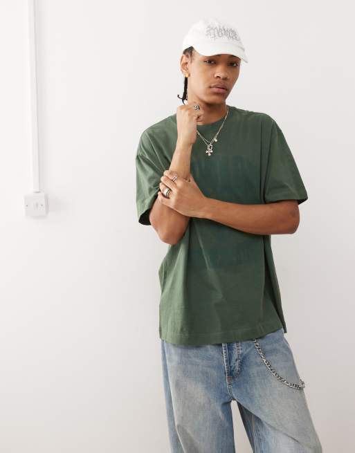 Weekday - T-shirt oversize à imprimé universitaire - Vert délavé