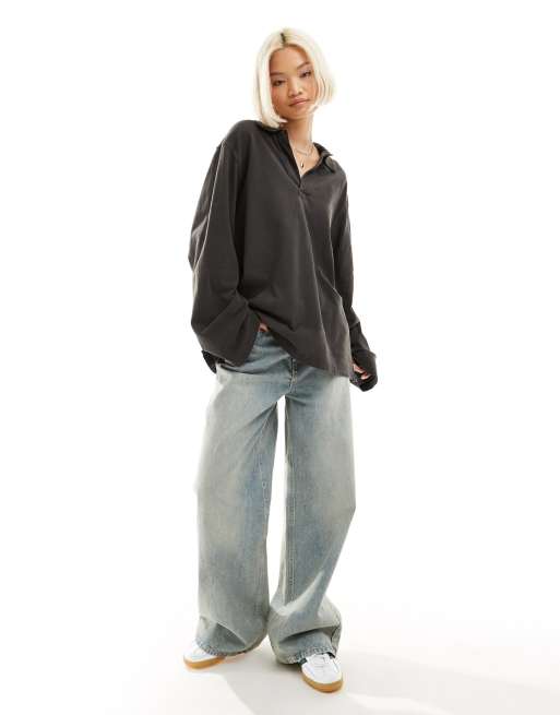 Weekday - Toby - Polo oversize à manches longues - Noir délavé