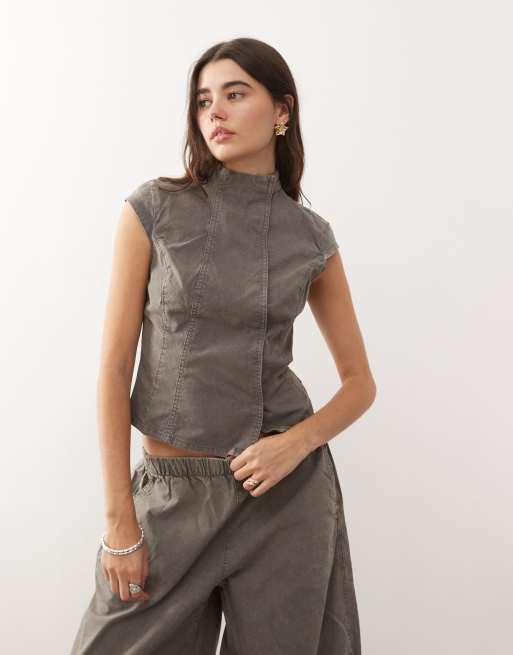 Weekday - Top col montant d'ensemble à mancherons - Gris délavé