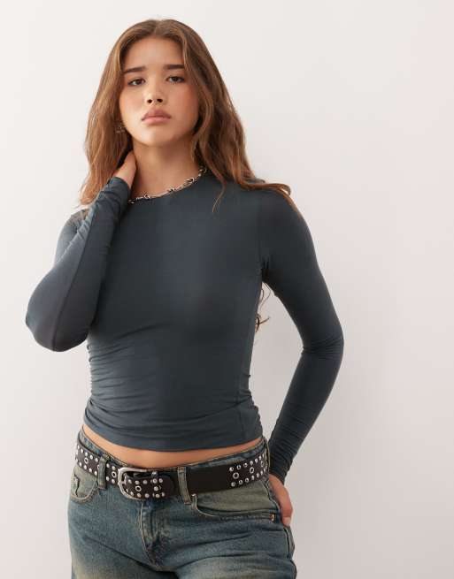 Weekday - Top doux et ajusté à manches longues - Bleu pétrole