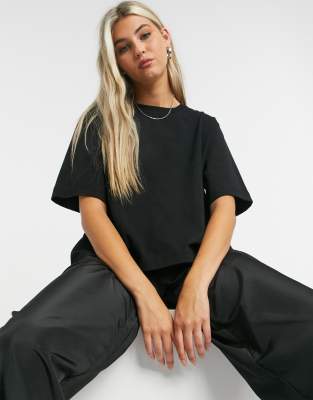 Weekday - Trish - T-shirt coupe carrée style moderne en coton - Noir - BLACK