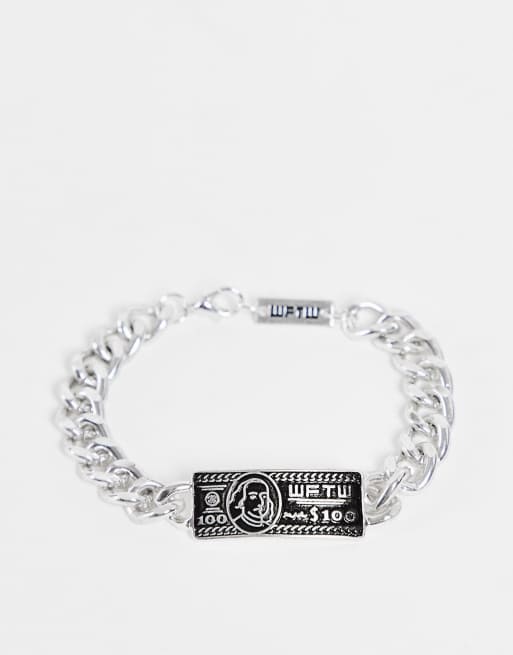 WFTW - Bracelet chaîne épais avec barre motif billet en dollars - Argenté