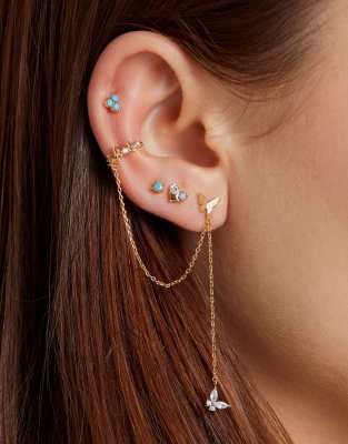 With Bling - Bijou pour oreille droite en plaqué avec chaîne, clou et papillon à cristaux