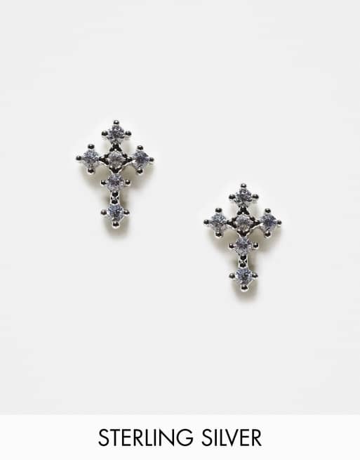 With Bling - Boucles d'oreilles à motif croix et zircons cubiques - Plaqué argent