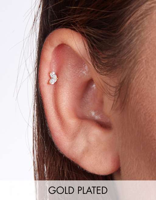 With Bling - Petit piercing coupe marquise avec barre en titane de 6 mm en plaqué or