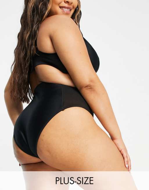 Wolf & Whistle Curve - Exclusivité - Bas de bikini taille haute avec empiècements en tulle - Noir