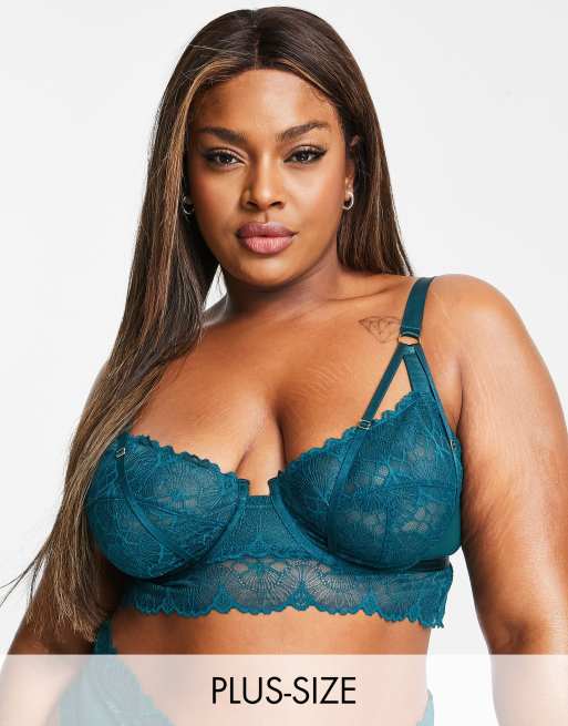 Wolf & Whistle Curve - Exclusivité - Soutien-gorge à balconnet long non rembourré en dentelle - Sarcelle