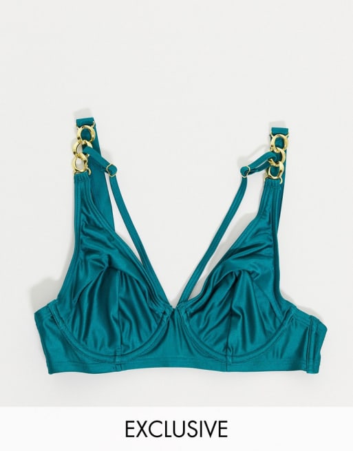 Wolf & Whistle - Exclusivité - Bikini à armatures pour poitrines généreuses avec détail chaîne - Vert