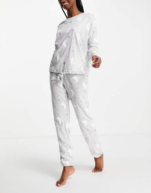 Women'secret - Ensemble de pyjama long à imprimé céleste - Gris chiné