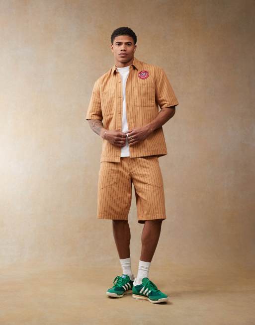 Wrangler - Casey Jones - Ensemble de travail avec short et chemise en sergé rayé - Orange