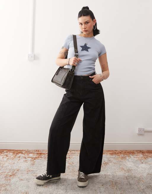 Wrangler - Jean ample léger coupe cowboy avec surpiqûres sur le devant - Noir
