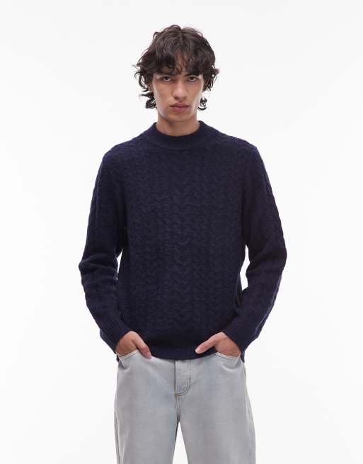 Wrangler - Pull en maille torsadée - Bleu marine
