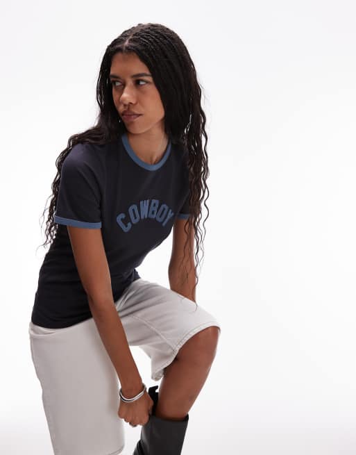 Wrangler - T-shirt à bordures contrastantes avec slogan Cowboy - Bleu marine