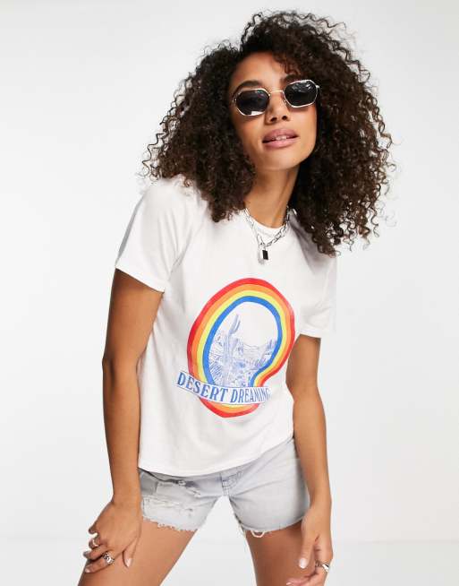 Wrangler - T-shirt avec logo arc-en-ciel sur le devant - Blanc