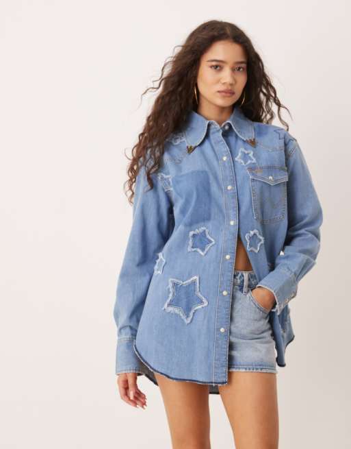 Wrangler x Lainey Wilson - Chemise en jean avec étoiles - Bleu