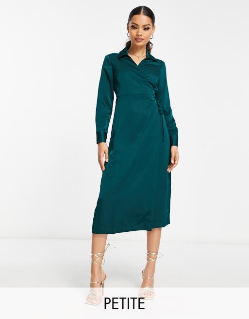 Y.A.S Petite - Exclusivité - Robe portefeuille mi-longue à manches longues - Sarcelle