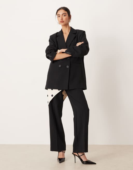 YAS - Ensemble ajusté avec pantalon ample et blazer à double boutonnage - Lie-de-vin