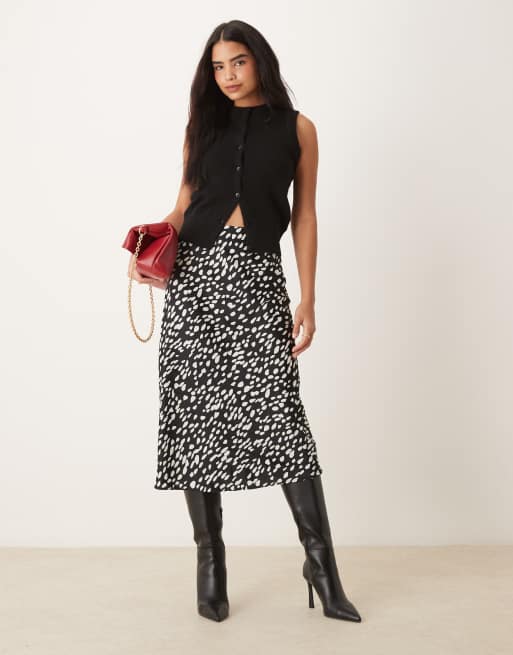 YAS - Jupe mi-longue en satin à pois - Noir et blanc