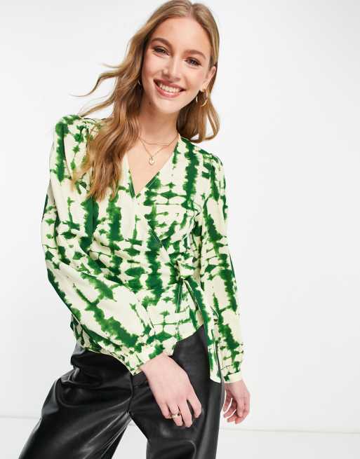Y.A.S - Melina - Top cache-cœur imprimé à manches longues - Vert