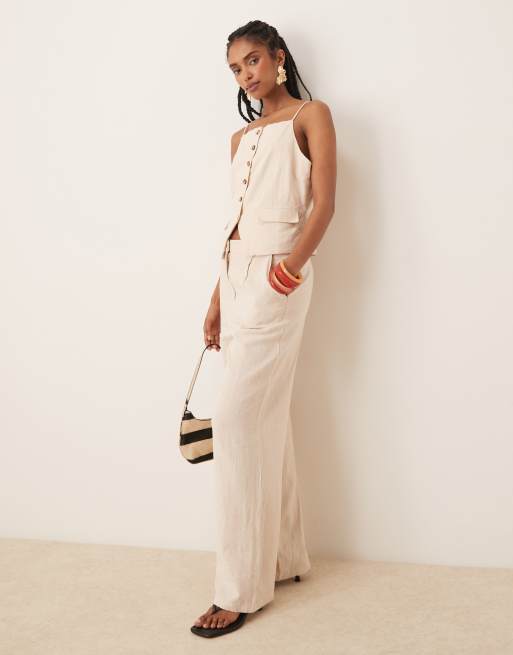 YAS - Pantalon d'ensemble ample et ajusté à taille haute en aspect lin - Crème chiné