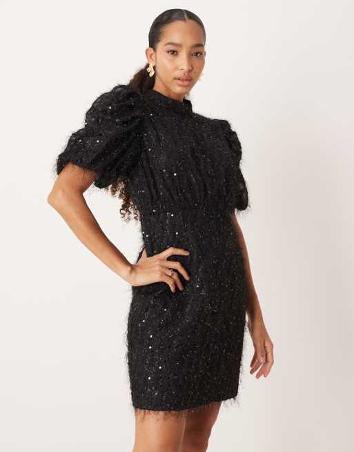 YAS - Robe courte en maille duveteuse texturée à sequins - Noir