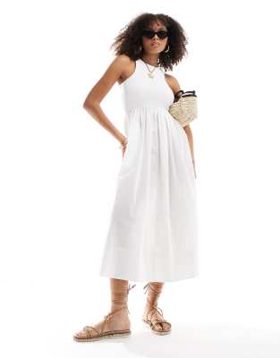 Y.A.S - Robe longue et hybride en jersey et coton avec col nageur - Blanc