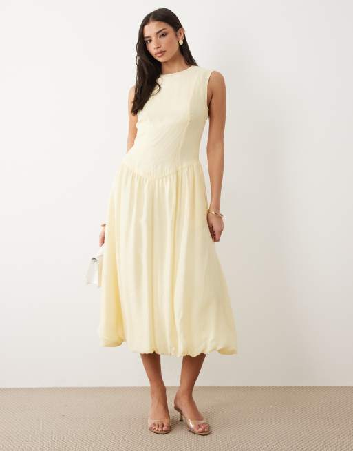 YAS - Robe mi-longue ajustée sans manches à taille basse et surpiqûres - Jaune pâle