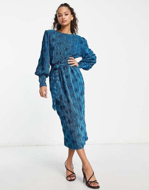 Y.A.S - Robe mi-longue pailletée à manches longues - Bleu
