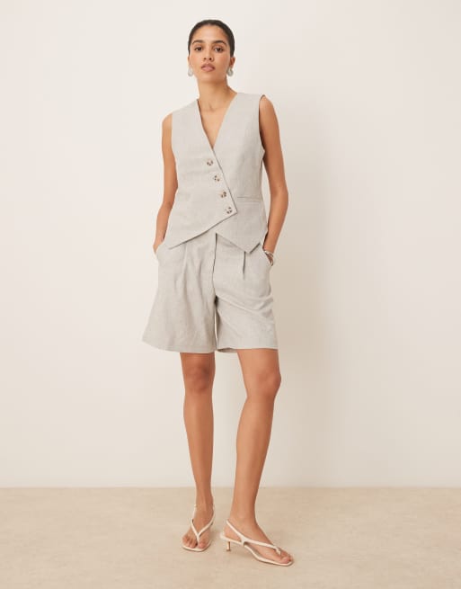 YAS - Short d'ensemble long et ajusté à pinces - Gris clair chiné