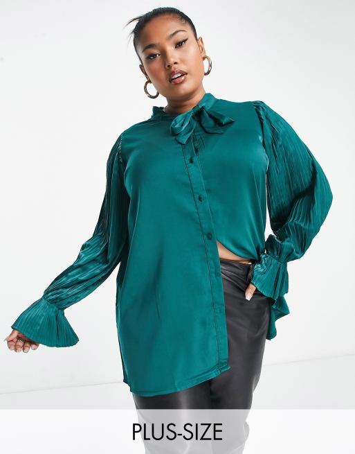 Yours - Blouse à manches plissées et nœud lavallière - Vert