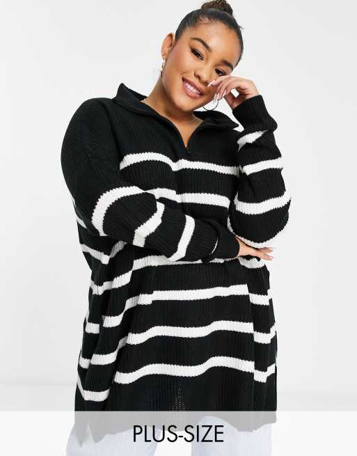 Yours - Pull à fermeture éclair - Rayures noires